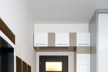 „Tentokrát šlo o rozsáhlou rekonstrukci, při které se úplně změnila dispozice bytu, a kromě nosných příček nezůstalo nic na původním místě. Zařizování jsme měli jednodušší v tom, že zrekonstruovaný holobyt měl na základě námi dodané dokumentace připravené veškeré elektroinstalace, a to včetně stropního odtahu odsavače a osvětlení,“ říká na úvod Petr Hodan ze studia ZAKI design. Základními dispozičními požadavky mladého páru byla velká obytná místnost s kuchyní a jídelnou, dále samostatná šatna a komora, dvě koupelny, ložnice, velká vstupní hala a dětský pokoj. Dalším zadáním bylo moderní zařízení s použitím kvalitních materiálů a tmavších barev.